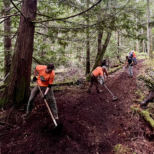 HIMBA members work on trails all the time: a bit of shovelling here, some brush removal there. When we have a bigger project we organize a trail work day and recently we’ve decided to add fixed dates to the mix. This will allow more of our members to attend work days, especially those who live off of Hornby. Please mark the 2nd Saturday of each month, from October to June in your calendar. these events will be rain or shine unless the weather is particularly horrible. If we do cancel a date, we will post a notification on our HIMBA Facebook and Instagram pages You can find out more or Join us by emailing tailcrew@himba.ca